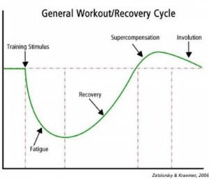 As you can see in the image, after a training stimulus (workout), there is a period of time where your performance drops and you are recovering from fatigue. This is where rest comes in. After around 48-72 hours after the training stimulus, the body ‘super compensates’, and your training performance increases temporarily. We want to take advantage of this supercompensation and apply another training stimulus (workout) to take advantage of the temporary increase in performance.